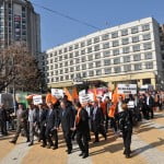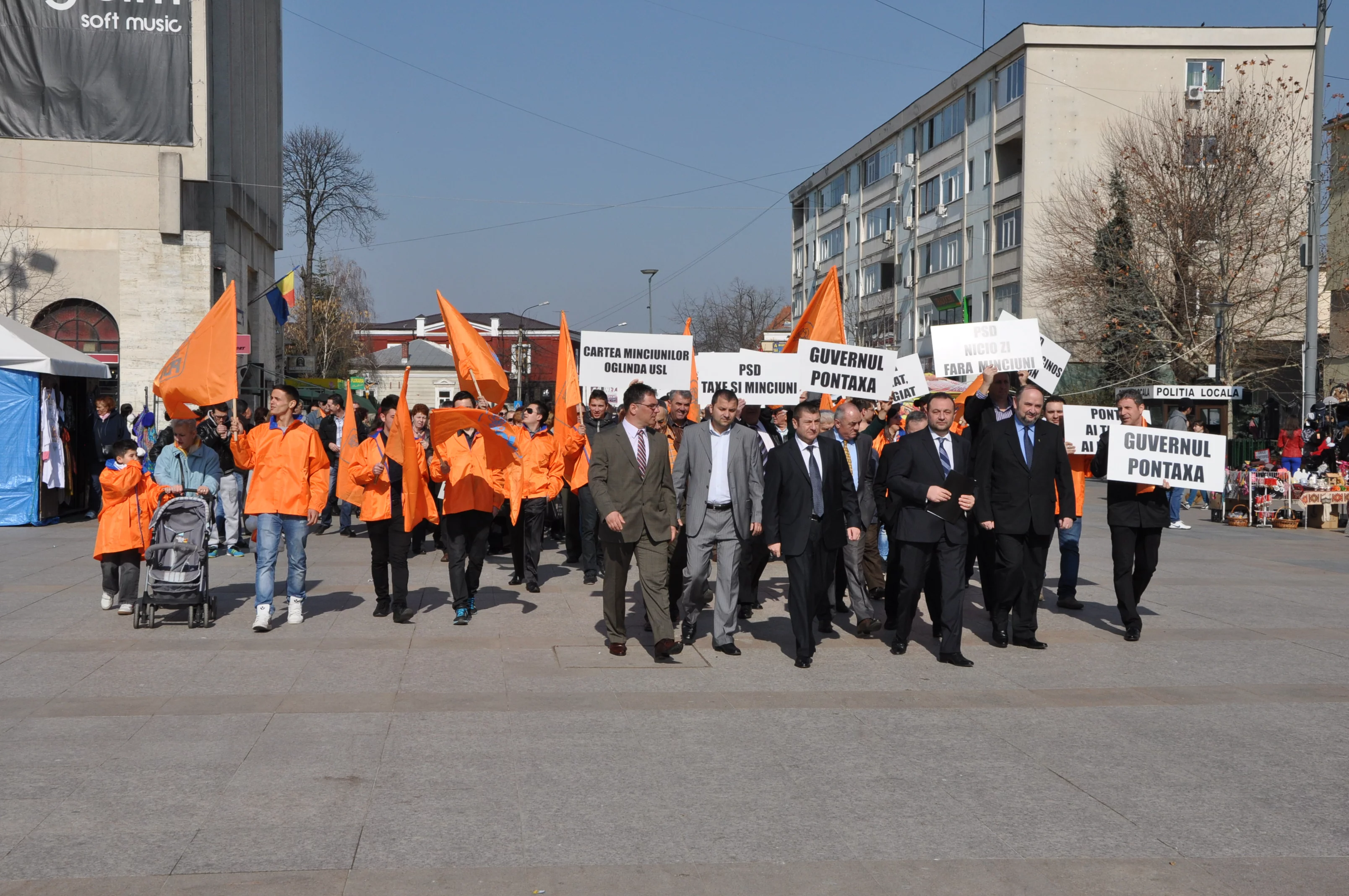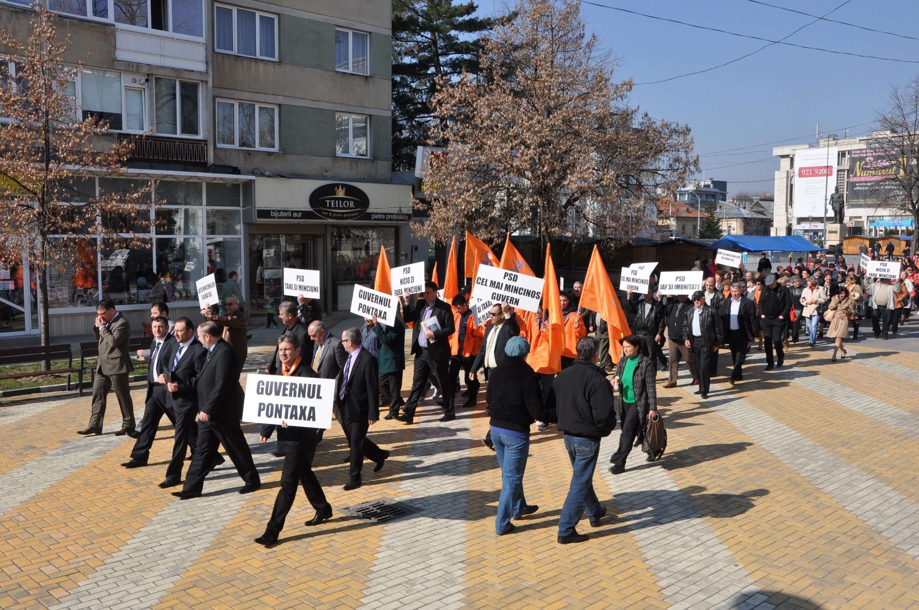 15 martie a fost o zi plina de evenimente pentru Partidul Democrat Liberal Arges. Democrat liberalii argeseni au organizat, la ora 10.00, o actiune de protest impotriva actualei guvernari. Au participat aproximativ 200 de persoane de membri ai PDL, care au fost coordonate de presedintele partidului, deputatul Catalin Teodorescu, alaturi de acesta aflandu-se Dan Bica – secretar general, Gheorghe Alecsei – prim-vicepresedinte si Adrian Moisescu, candidatul PDL Arges la alegerile europarlamentare. Democrat liberalii argeseni, inarmati cu fluiere, steaguri si pancarte, s-au deplasat in mars dinspre Primaria Pitesti catre Prefectura unde, delegatia condusa de presedintele Catalin Teodorescu a inmanat subprefectului Ion Burnei documentul intitulat “Cartea minciunilor USL – 22 de luni de guvernare USL, 22 de luni de jaf, incompetenta si imunitate”.