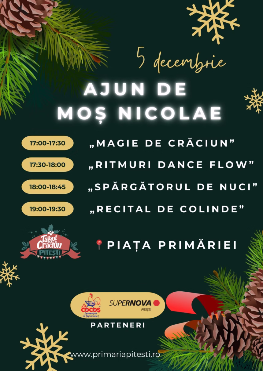 În această seară, Piața Primăriei din Pitești nu mai este o simplă piață – devine poarta oficială către sezonul minunilor de iarnă! Mii de lumini, muzică, dans, colinde și un brad uriaș pregătesc terenul pentru cea mai așteptată noapte a copiilor: Ajunul lui Moș Nicolae. Aici începe povestea!