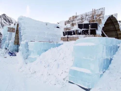 Douăzeci de muncitori sculptează zi lumină la blocurile de gheaţă luate din Bâlea Lac, pentru a clădi camerele unui hotel. Pe zi ce trece, „construcţia” de gheaţă, zăpadă şi apă îşi măreşte proporţiile, apar elemente noi din viitorul hotel, astfel că, dacă nu vor interveni probleme deosebite sau dacă vremea nu le va juca feste, echipa de 20 de constructori va putea finaliza cea mai mare parte a lucrărilor până în Ajunul Crăciunului.