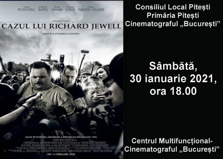Sâmbătă, 30 ianuarie 2021, de la ora 18:00, la Cinematograful de artă „București” va fi proiectat filmul „Cazul lui Richard Jewell”, cu Olivia Wilde, Sam Rockwell, Paul Walter Hauser, Jon Hamm și Kathy Bates în rolurile principale, în regia lui Clint Eastwood.Acțiunea în cadrul filmului prezintă atentatul cu bombă de la Jocurile Olimpice de la Atlanta, din 1996, când, datorită vigilenței lui Jewell, unul dintre cei care asigura paza stadionului, o mulțime de vieți au fost salvate. Explozia a avut totuși loc, însă acest lucru s-a petrecut pe fondul retragerii spectatorilor de pe stadion, fiind evitată astfel o tragedie și mai mare. Cu toate acestea, viața lui Jewell a fost dată peste cap. În urma plasării sale pe lista de suspecți a FBI-ului, cele mai mici detalii ale vieții sale au fost investigate, iar mass-media i-au urmărit fiecare mișcare mai multe luni și l-au tratat drept principal suspect al atentatului.Prețul unui bilet la acest film este de 8 lei, cu reduceri de 50% pentru studenți și pensionari și de 75% pentru elevi.