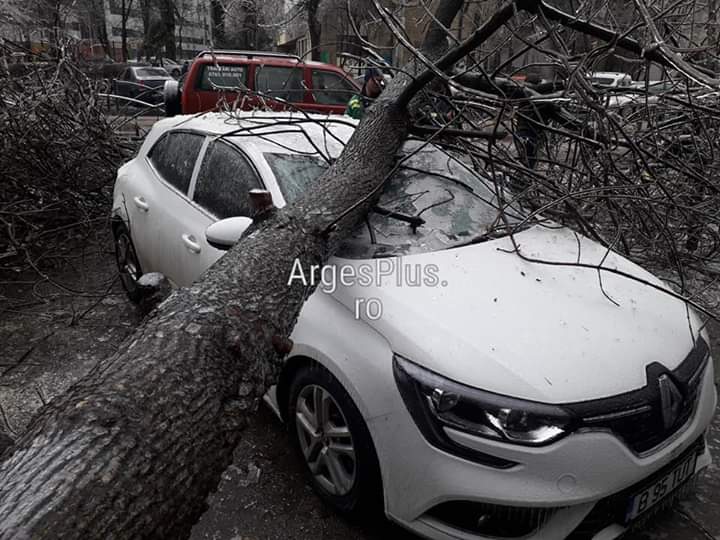 Numai în decursul a aproape două zile s-au înregistrat aproximativ 50 de intervenții pentru îndepărtarea pomilor căzuți peste mașinile aflate în parcări.