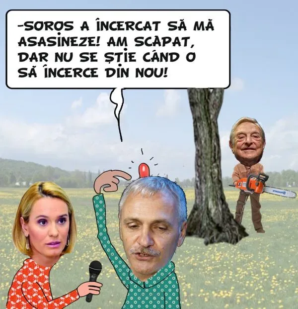 Întrebat dacă este vorba de Soros, Dragnea a răspuns: „eu nu mă gândesc la el, el se gândește la mine. Nu știu dacă era treaba asta”Caricatura de Mihai Matei pentru www.argesplus.ro