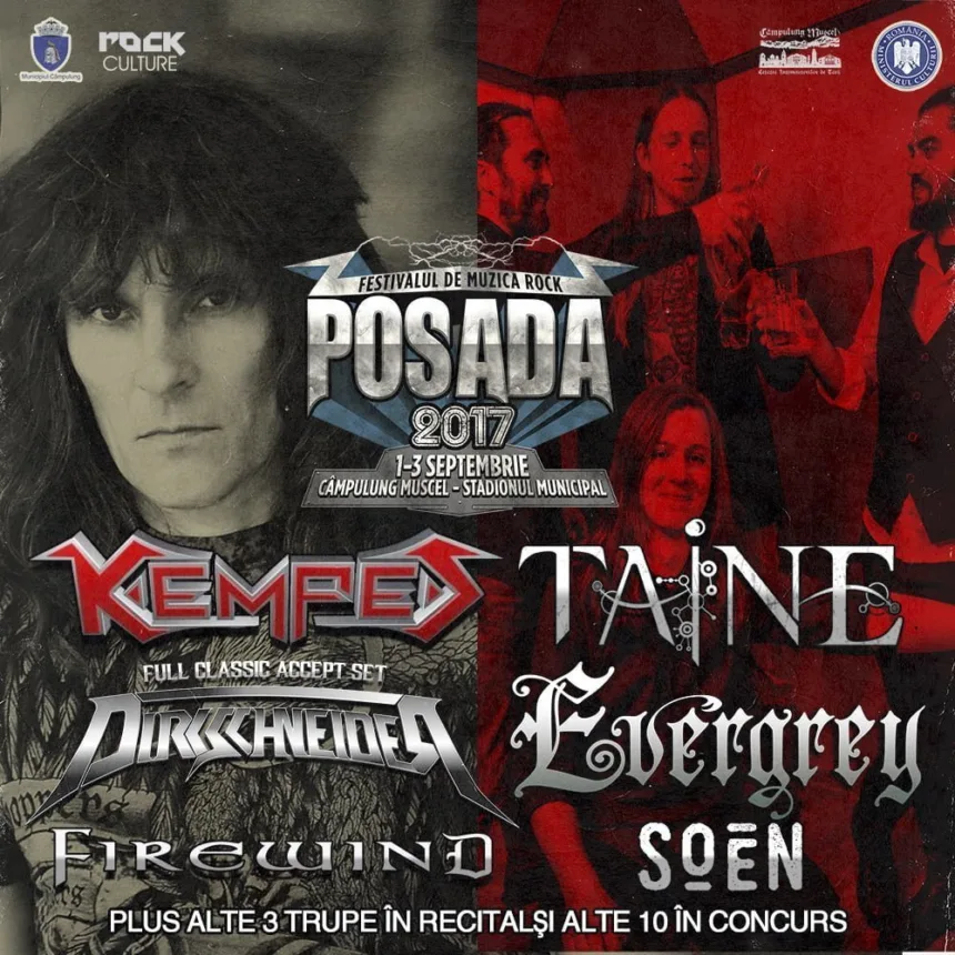 KEMPES şi TAINE sunt primele trupe româneşti care se alătură headlinerilor internaţionali DIRKSCHNEIDER, EVERGREY şi SOEN şi FIREWIND la Posada Rock 2017. În curând vom anunța şi alte formațiile autohtone care vor cânta în recital.