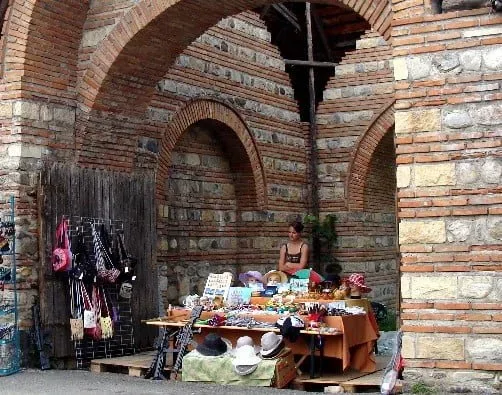 Fix lângă zidul Ansamblului Bisericii Domneşti din Curtea de Argeş, chiar sub arcadă, a fost aşezată o tarabă plină cu kitsch-uri. Mitraliere de plastic, pălăriloare, vederi, suveninuri şi multe alte au fost amplasate la vânzare exact lângă unul dintre cele mai importante monumente istorice româneşti. Nu era de ajuns că la poarta Bisericii Domneşti este staţie de maxi-taxi, trebuia şi să apară şi o tarabă plină cu kitsch-uri care să strice peisajul.