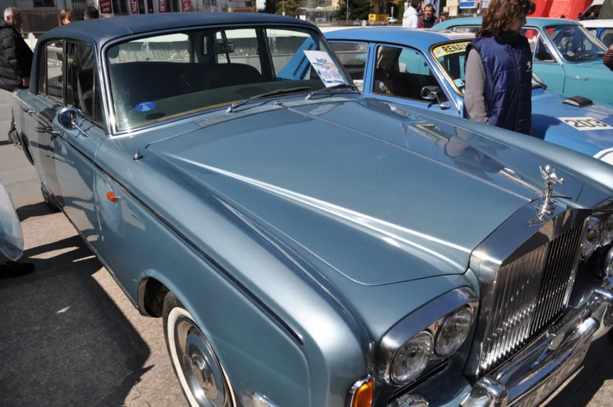 La loc de cinste, în cadrul acestei expoziții, a fost un Rolls Royce fabricat în 1971. Limuzina britanică are un motor pe benzină, de 3.800 de centimetri cubi și un consum pe măsură, 18 litri/100 km. Asta e, boieria cu mare cheltuială se ține. Un amănunt important este acela că mașina este înmatriculată în județul Argeș, ca majoritatea autoturismelor expuse astăzi.