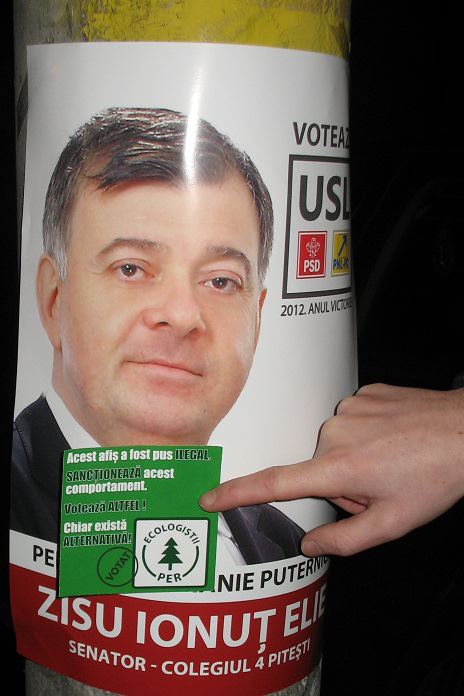 – să lase afişele cu stickerul pe ele, facându-ne astfel reclamă nouă ecologiştilor şi antireclamă lor