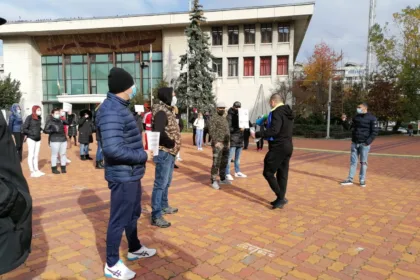 Protest HoReCa în Pitești: „Nu vrem șomaj” , „Domnule prefect, ieșiți afară să stați de vorbă cu noi!”