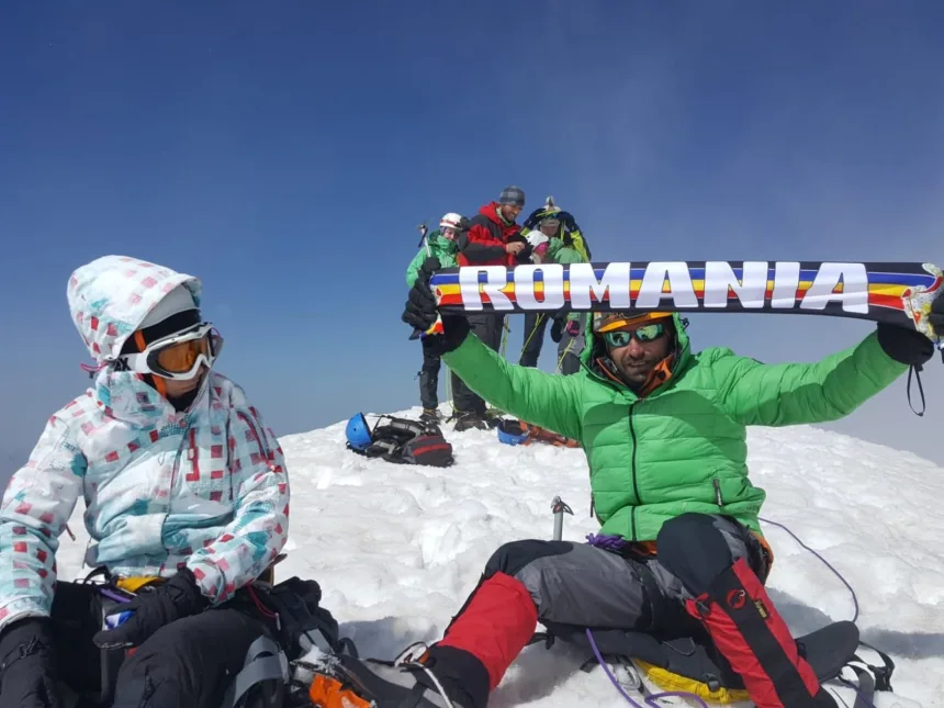 Vârful Kazberg (5.042 de metri), din Munții Caucaz, Georgia, a fost escaladat duminică, la ora locală 9.48, de către trei români, printre care și argeșeanul Florian Mihalcea (36 de ani), unul dintre cei mai experimentați alpiniști și salvatori montani din această zonă a țării. Din ceea ce ne-a mărturisit Mihalcea, echipa românească s-a confruntat cu un vânt puternic, dar a avut o vizibilitate bună, așa că acest vârf a fost cucerit, într-un final, de tinerii inimoși.