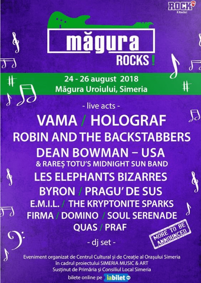Va asteptam la Magura Uroiului sa ne bucuram de muzica buna impreuna cu : Holograf, Vama, Robin and the Backstabbers, Les Elephants Bizarres, Byron, Pragu’ de Sus, E.M.I.L., The Kryptonite Sparks, FiRMA si multi altii.